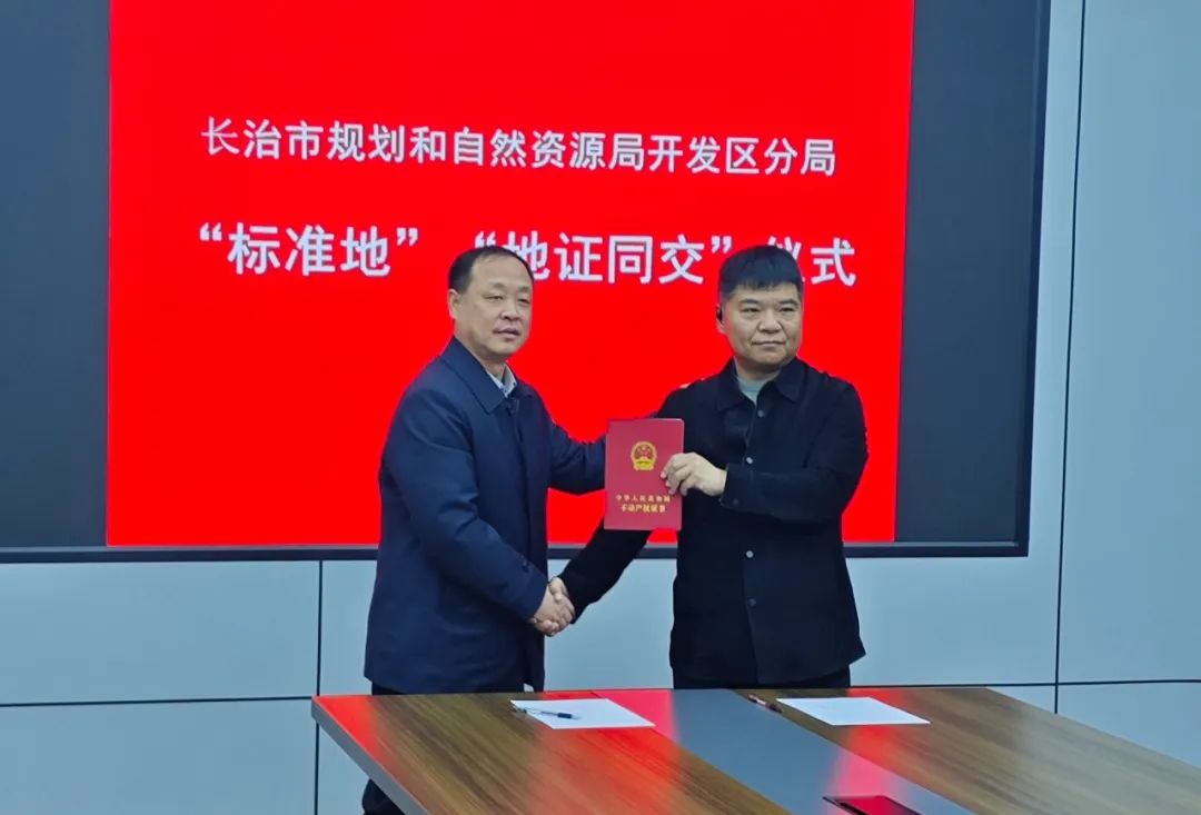 今年2月18日,市规划和自然资源局开发区分局组织山西长高智汇科技发展集团、长治市长高智汇翟店工业园建设开发有限公司举行“标准地”“地证同交”首证颁发仪式。