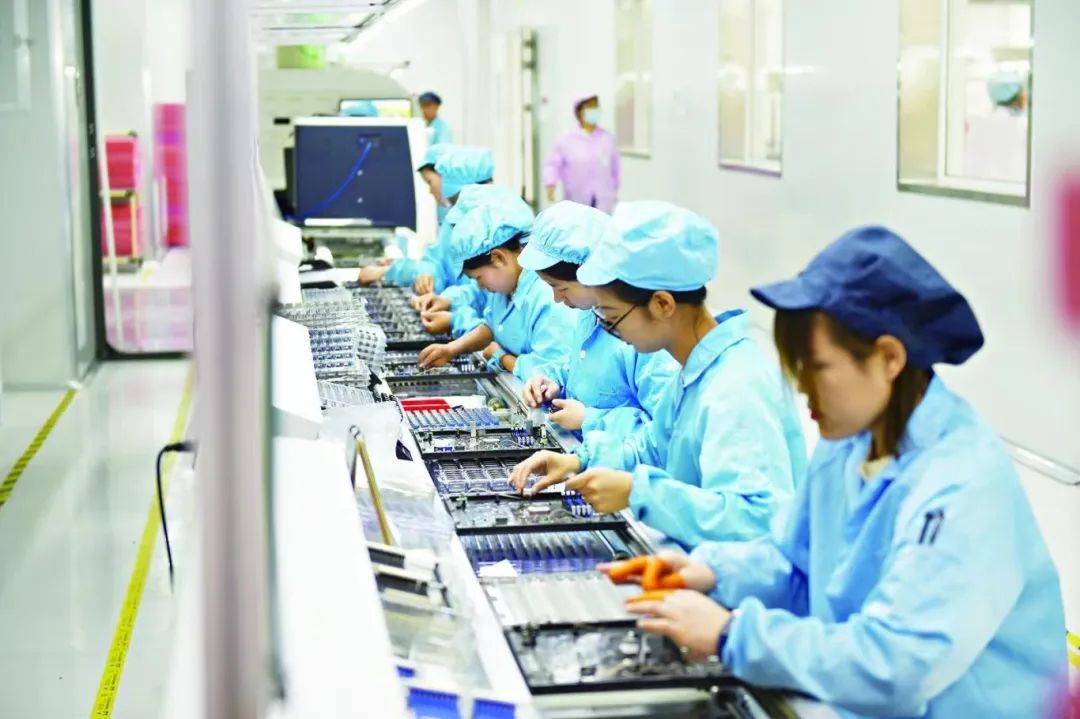 ▲长治高新区卓怡恒通信息安全有限公司工人正在dip生产线上作业。