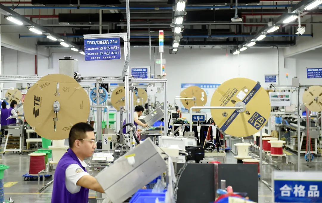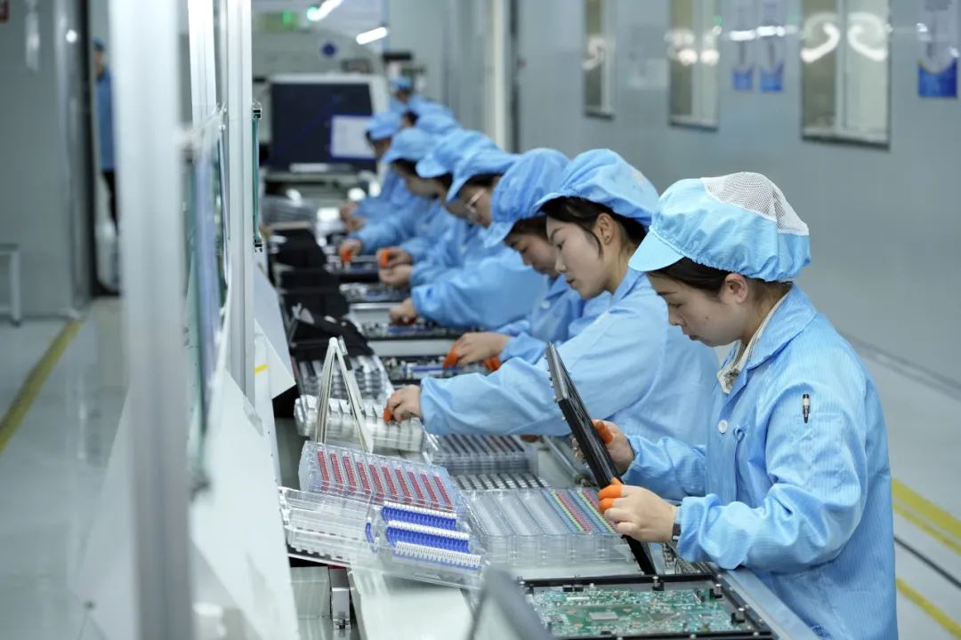 ▲立讯精密工业股份有限公司生产车间内,工人们有条不紊地赶制生产订单