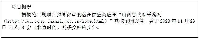 标题:梧桐苑二期项目预算评审 竞争性磋商公告 | |